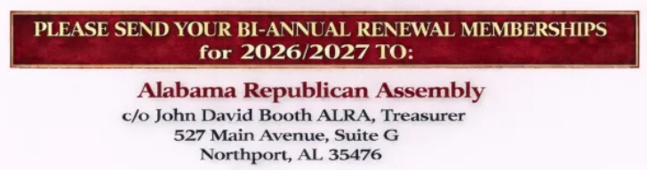 The Alabama Republican Assembly advocates for the interests of political organizations such as the Republican Party within the state of Alabama. Each Alabama Republican Assembly Chapter consists of members dedicated to electing principled Republican candidates to party and public offices, with the objective of implementing their values through legislation.